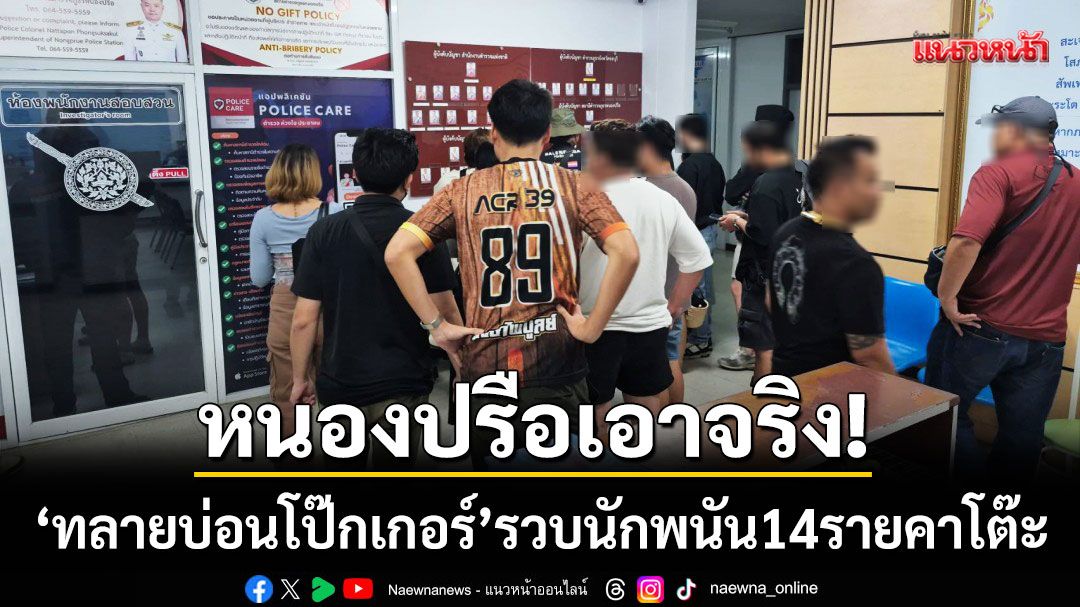 หนองปรือเอาจริง! บุกทาวน์เฮาส์ซอยเขาน้อย ‘ทลายบ่อนโป๊กเกอร์’ รวบนักพนันชาย-หญิง 14 รายคาโต๊ะ