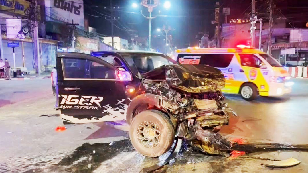 วันที่ 23 ก.พ. 69 พ.ต.ต.อดิพงศ์ พรหมหนู พนักงานสอบสวน สภ.เมืองพัทลุง ได้รับแจ้งเหตุอุบัติเหตุรถยนต์กระบะชนกันบริเวณสี่แยกช่องโก ถนนราเมศร์ เขตเทศบาลเมืองพัทลุง จึงรุดไปตรวจสอบพร้อมเจ้าหน้าที่กู้ชีพกู้ภัย