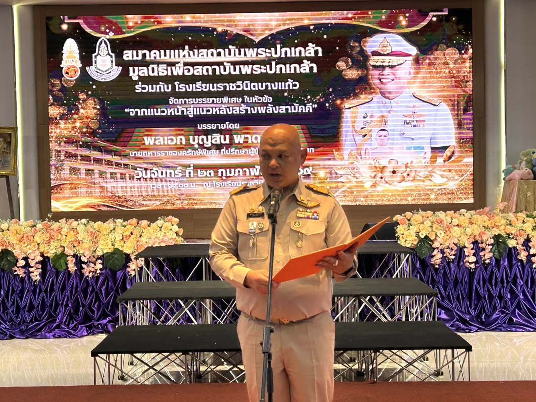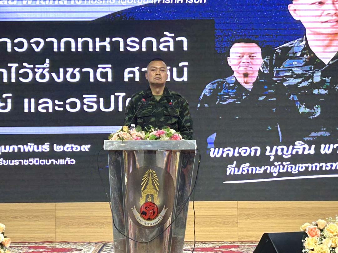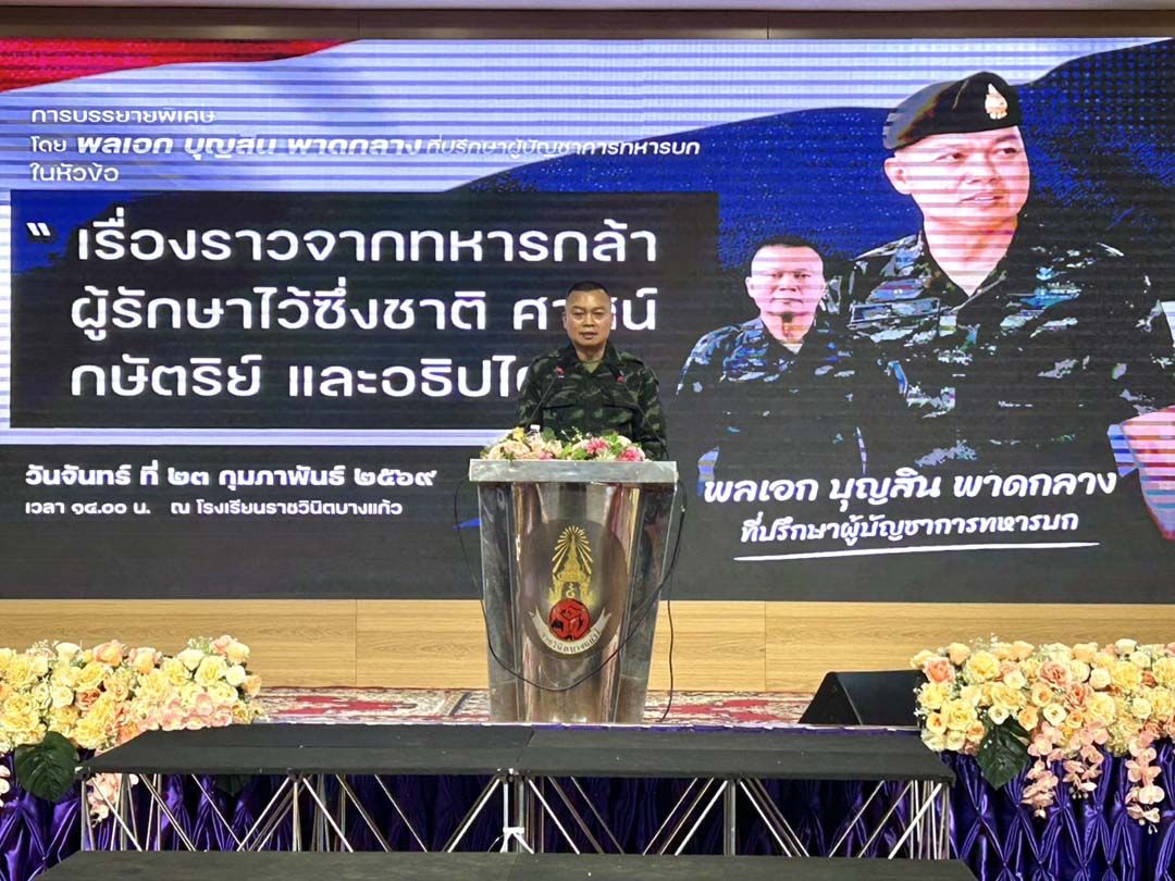 "แม่ทัพกุ้ง"บรรยายพิเศษ"รร.ราชวินิตบางแก้ว" ฝากประเทศในมือเยาวชน ลั่น ทหาร-ตร.ทวงคืนแผ่นดินไทย ครบทุกพื้นที่ ขอช่วยกันปกป้องดูแล พัฒนาชาติไปข้างหน้า