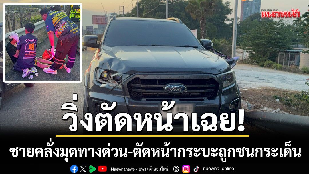 วิ่งตัดหน้าเฉย! ชายคลั่งปีนแบริเออร์มอเตอร์เวย์ ตัดหน้ารถกระบะถูกชนกระเด็นสาหัส คนขับโอดเบรกไม่ทันรถตามหลังเพียบ
