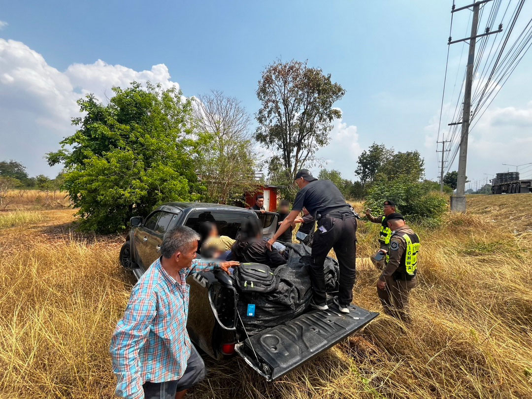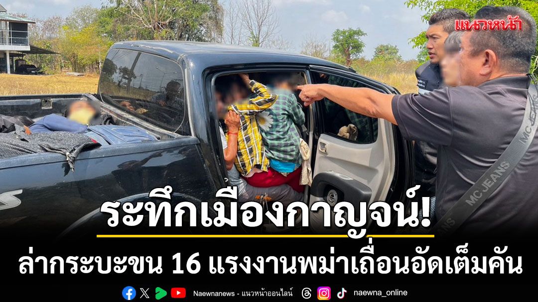 ระทึกเมืองกาญจน์! ตร.ทางหลวงไล่ล่ากระบะซิ่งหนี ดิ่งลงข้างทางรวบหนุ่มวัย 21 ขน 16 แรงงานพม่าเถื่อนอัดเต็มคัน
