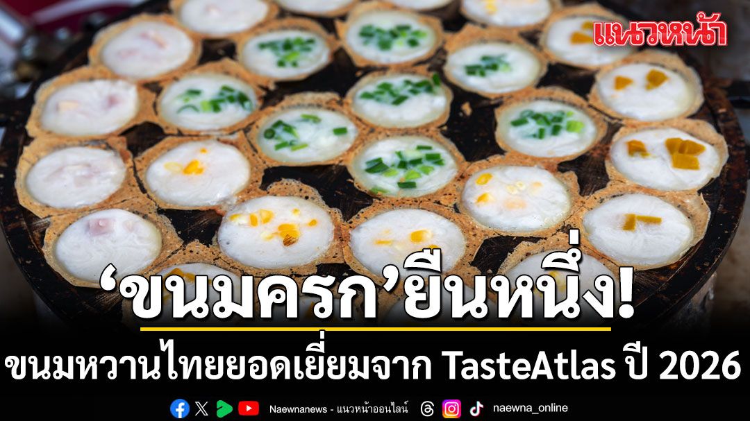สุดปัง “ขนมครก” ขนมไทยครองใจนักชิมทั่วโลก คว้าอันดับ 1 ของหวานไทย ปี 2026 จากการจัดอันดับ TasteAtlas แพลตฟอร์มด้านอาหารชื่อดังระดับโลก