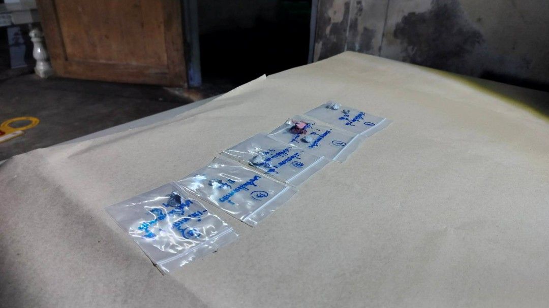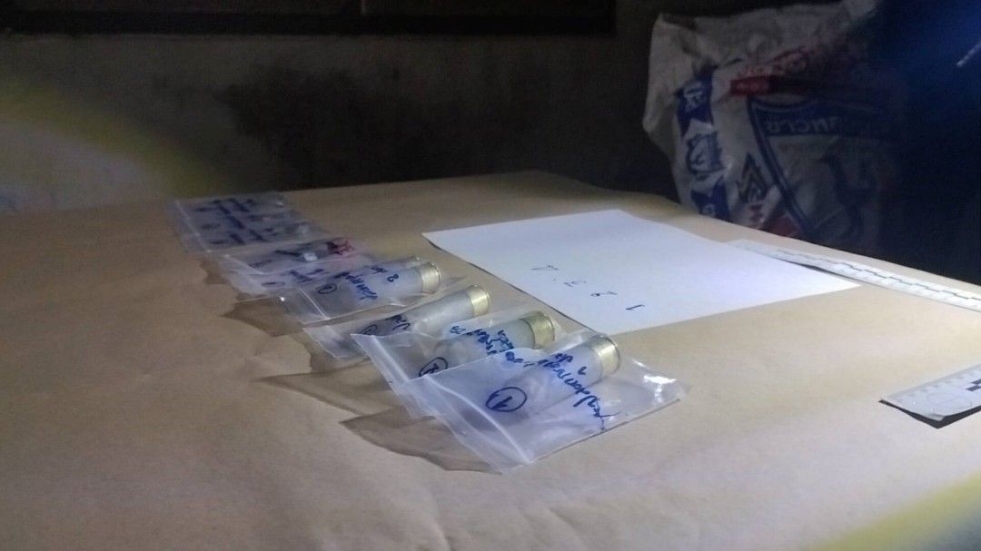 จากการตรวจสอบบนถนนคอนกรีตหน้าบ้าน เจ้าหน้าที่พบปลอกกระสุนปืนลูกซองจำนวน 5 ปลอก พร้อมหมอนรองกระสุนและเศษตะกั่วอีกจำนวนหนึ่ง ขณะที่บริเวณตัวบ้านพบรอยกระสุนกว่า 20 รู กระจายอยู่ตามผนังปูน เสาหน้าบ้าน และประตูบ้าน นอกจากนี้กระสุนยังทะลุเข้าไปถูกเครื่องซักผ้าในบ้านหลังติดกันซึ่งเป็นบ้านของมารดาสามีได้รับความเสียหาย