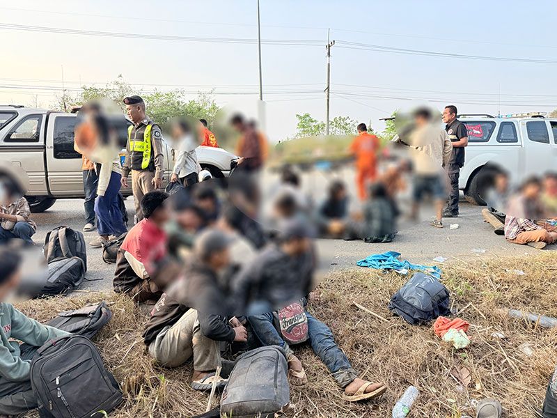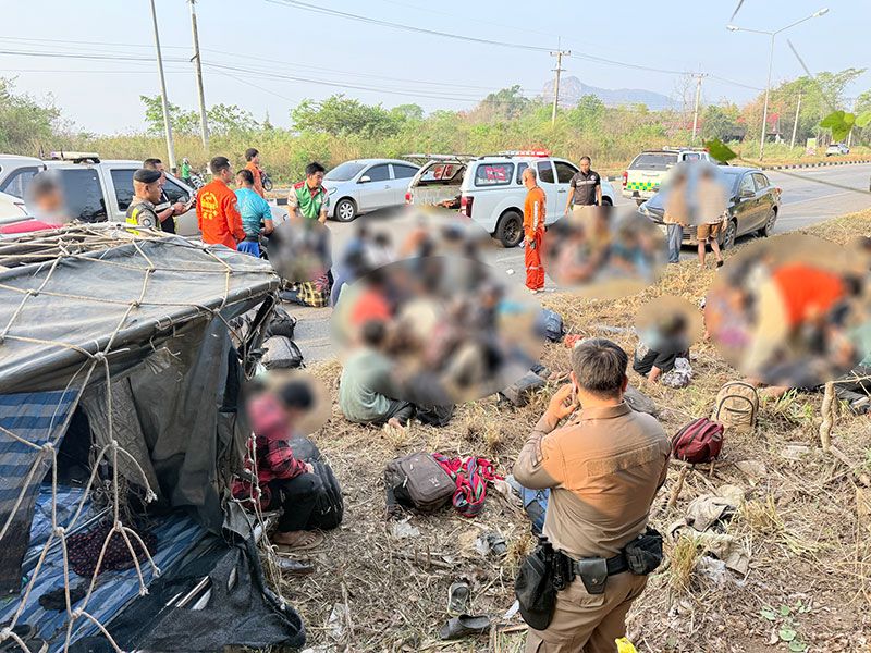 ด่วน ขบวนการขนแรงงานเถื่อน ซิ่งตีนผีหนีการจับกุม เสียหลักพลิกคว่ำ เจ็บเกลื่อนถนน
