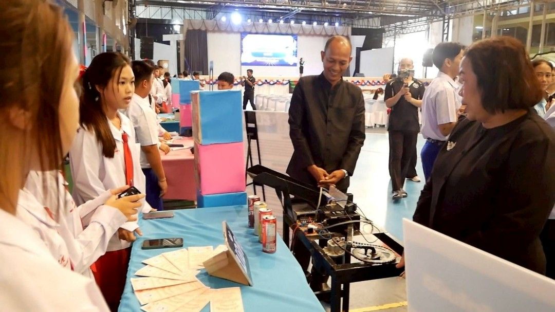 นางสาวละมูล จันทระวี รองศึกษาธิการจังหวัดสุราษฎร์ธานี กล่าวว่า กิจกรรมวันวิชาการ นวัตกรรมและปัญญาประดิษฐ์ เป็นเวทีสำคัญที่เปิดโอกาสให้นักเรียนได้แสดงศักยภาพด้านความคิดสร้างสรรค์ การใช้เทคโนโลยี และการบูรณาการองค์ความรู้จากห้องเรียนสู่การปฏิบัติจริง ซึ่งจะเป็นพื้นฐานสำคัญในการพัฒนาผู้เรียนให้มีความพร้อมต่อการศึกษาในระดับที่สูงขึ้น และการดำรงชีวิตในโลกยุคดิจิทัล ขอชื่นชมคณะผู้บริหาร คณะครู และนักเรียนทุกคนที่ร่วมกันจัดกิจกรรมอันทรงคุณค่าในครั้งนี้