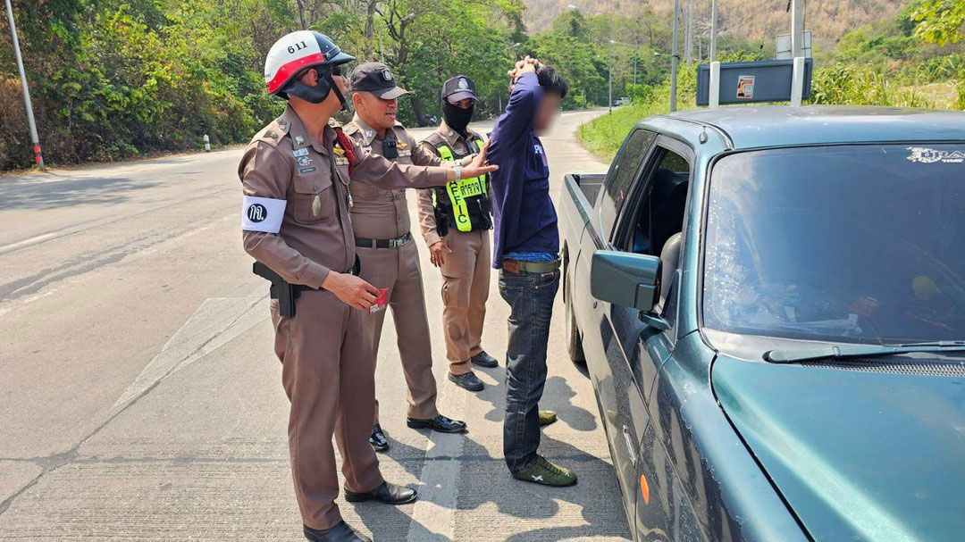 หนีไม่รอด! หนุ่มไทรโยคขับกระบะไปเยี่ยมเมียในคุก เจอด่านตรวจจราจรเมืองกาญจน์ 'ตกใจพิรุธออก-ค้นตัวเจอยาบ้ากำแน่นในมือ'
