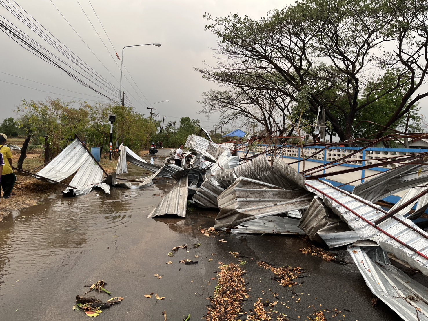 หลังจากเมื่อช่วงเวลาประมาณ 17.20 น. วันที่ 26 ก.พ.ที่ผ่านมา ได้เกิดพายุฝนฤดูร้อนพัดถล่มหลายพื้นที่ของ จ.บุรีรัมย์ ทำให้อาคาร บ้านเรือน สิ่งปลูกสร้าง ต้นไม้ รวมเต็นท์หลังคาสถานที่จัดงานมหรสพต่าง ๆ ในหลายพื้นที่ได้รับความเสียหาย