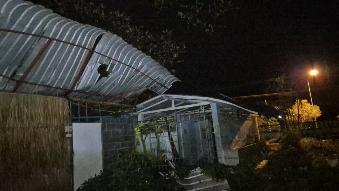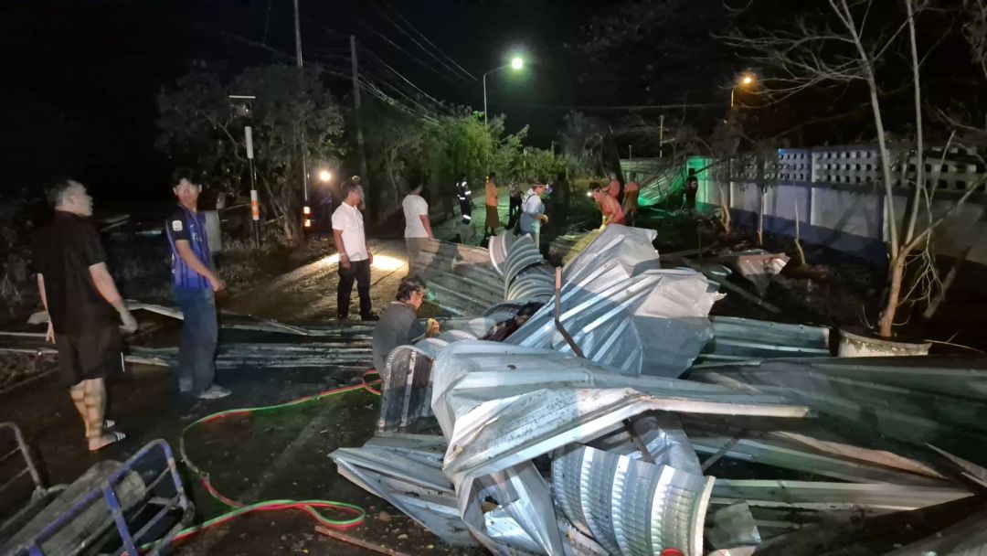 มากองกีดขวางถนนเข้าออกหมู่บ้าน ระหว่างบ้านพลับพลา ไปยังบ้านโคกกี่และบ้านนกกระเรียน ต.สะเดา อ.พลับพลาชัย จ.บุรีรัมย์ โดยใช้เวลากว่า 1 ชั่วโมง จึงสามารถนำเอาแผ่นหลังคาเหล็กเมทัลชีท สรรไท และโครงเหล็กหลังคา ของอาคารโรงจอดรถ ออกจากบริเวณถนนได้ เพื่อให้รถสามารถสัญจรไปมาได้ตามปกติ