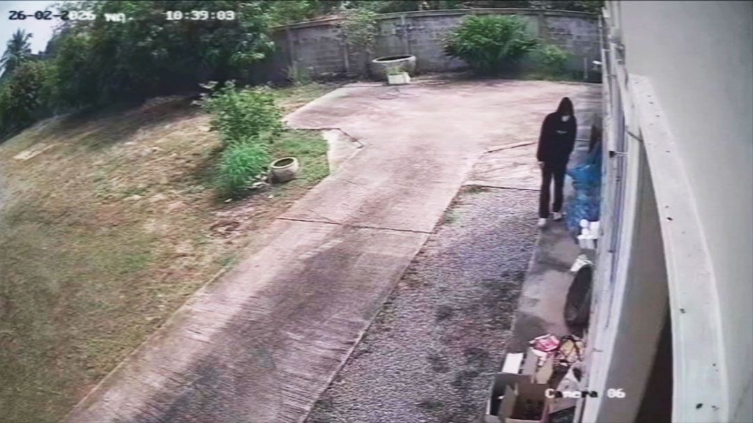 จากการตรวจสอบกล้องวงจรปิดรอบบริเวณ พบชายต้องสงสัยอายุประมาณ 20-26 ปี สวมเสื้อฮู้ดสีดำและหน้ากากอนามัย ขี่จักรยานยนต์ไม่ติดแผ่นป้ายทะเบียนมาดูลาดเลา เมื่อคนร้ายเข้าไปในบ้านได้แล้ว ได้ทำการ ถอดปลั๊กกล้องวงจรปิด ใช้ผ้าคลุม และขโมยตัวกล้องพร้อมเมมโมรี่การ์ดไปด้วย เพื่อป้องกันการติดตามตัว