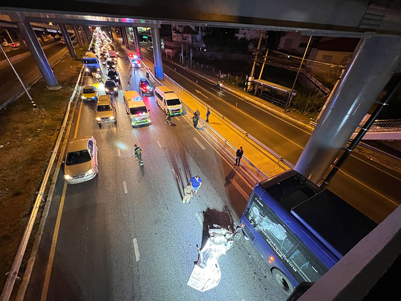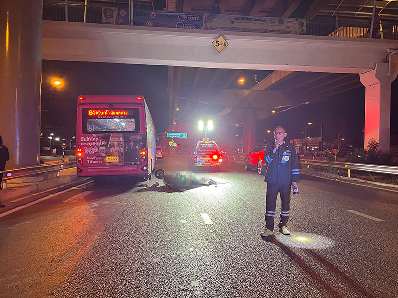 2 มีนาคม 2569 เมื่อกลางดึกวันที่ 1 มีนาคม เจ้าหน้าที่ตำรวจ สภ.บางกรวย จ.นนทบุรี พร้อมเจ้าหน้าที่มูลนิธิร่วมกตัญญูเดินทางเข้าตรวจสอบหลังจากได้รับแจ้งมีรถจักรยานยนต์พุ่งชนชนท้ายรถประจำทางผู้ขับขี่เสียชีวิต เหตุเกิดถนนราชพฤกษ์ขาเข้า ก่อนข้ามคลองมหาสวัสดิ์ ต.มหาสวัสดิ์ อ.บางกรวย จากนั้นจึงประสานแพทย์เวรจากสถาบันนิติวิทยาศาสตร์ร่วมตรวจสอบ