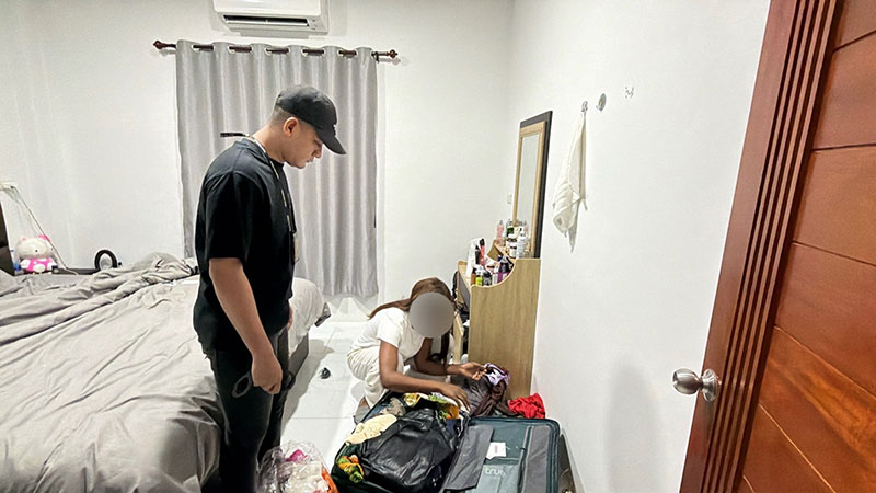 จากการวางแผนล่อซื้อในราคา 5,000 บาท ต่อการให้บริการ 2 ครั้ง เมื่อสายลับส่งสัญญาณตามที่นัดหมาย เจ้าหน้าที่จึงเข้าแสดงตัวตรวจค้น พบผู้ต้องหาทั้ง 2 รายอยู่ภายในบ้านพักหลังดังกล่าว พร้อมด้วยนักท่องเที่ยวชายอีกรายที่มาใช้บริการก่อนหน้า