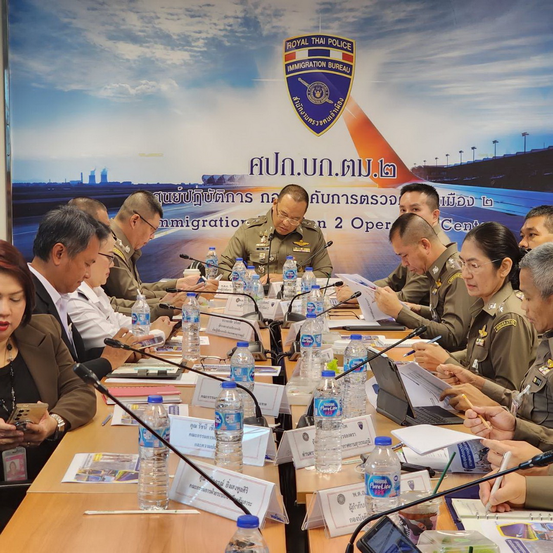 วันที่ 2 มี.ค. 69 พล.ต.ต.เชิงรณ ริมผดี โฆษก สตม. เปิดเผยผลการประชุมด่วนร่วมกับ ตม.สนามบินหลัก (สุวรรณภูมิ ดอนเมือง ภูเก็ต) และผู้แทนจากบริษัท ท่าอากาศยานไทย จำกัด (มหาชน) รวมถึงคณะกรรมการดำเนินงานธุรกิจการบินกรุงเทพ (AOC) เพื่อประเมินสถานการณ์ความหนาแน่นของผู้โดยสารขาเข้าที่เพิ่มขึ้นอย่างต่อเนื่อง