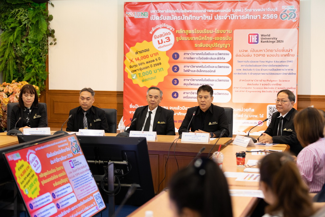2 มีนาคม 2569 ณ ห้องประชุมราชพฤกษ์ อาคารนวมินทรราชินี มจพ. ศาสตราจารย์ ดร. ธีรวุฒิ บุณยโสภณ นายกสภามหาวิทยาลัยเทคโนโลยีพระจอมเกล้าพระนครเหนือ (มจพ.) เป็นสักขีพยานในพิธีแถลงข่าวมอบทุนให้กับนักเรียน ม.3 หลักสูตรโรงเรียน–โรงงาน รูปแบบเทคนิคไทย-เยอรมัน โดยมี ศาสตราจารย์ ดร.ธานินทร์ ศิลป์จารุ อธิการบดี มจพ. เป็นประธานในพิธีแถลงข่าว พร้อมด้วย ผู้ช่วยศาสตราจารย์ พีระศักดิ์ เสรีกุล รองอธิการบดีประจำวิทยาเขตปราจีนบุรี ผู้ช่วยศาสตราจารย์ ดร.กฤษฎากร บุดดาจันทร์ คณบดีคณะเทคโนโลยีและการจัดการอุตสาหกรรม ผู้ช่วยศาสตราจารย์ ดร.รณินทร์ กิจกล้า คณบดีคณะบริหารธุรกิจและอุตสาหกรรมบริการ รองศาสตราจารย์ ดร.รัชนี เจริญ คณบดีคณะอุตสาหกรรมเกษตรดิจิทัล มจพ. วิทยาเขตปราจีนบุรี ร่วมกันแถลงข่าวประกาศทิศทางการยกระดับสมรรถนะผู้เรียน โดยเชื่อม “โรงเรียน–โรงงาน” อย่างเป็นระบบ เพื่อสร้างกำลังคนทักษะสูงเพื่อรองรับการพัฒนาอุตสาหกรรมสมัยใหม่ของประเทศ และพัฒนาสู่กำลังคนทักษะสูงในกลุ่ม First S-Curve และ New S-Curve โดยเชื่อมโยงการเรียนรู้ในสถานศึกษากับประสบการณ์ทำงานจริงในสถานประกอบการตั้งแต่ปีแรกของการศึกษา ซึ่งหลักสูตรดังกล่าวเปิดรับสมัครนักเรียนที่สำเร็จการศึกษาชั้นมัธยมศึกษาปีที่ 3 (ม.3) หรือเทียบเท่า เข้าศึกษาต่อ ณ มหาวิทยาลัยเทคโนโลยีพระจอมเกล้าพระนครเหนือ วิทยาเขตปราจีนบุรี