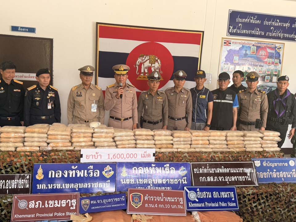 ‘จุดตรวจปากแซง’ ตม.อุบลราชธานี ร่วม‘นรข.’ยึดยาบ้า 1,600,000 เม็ด
