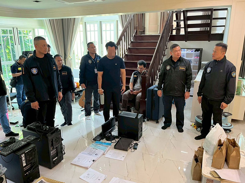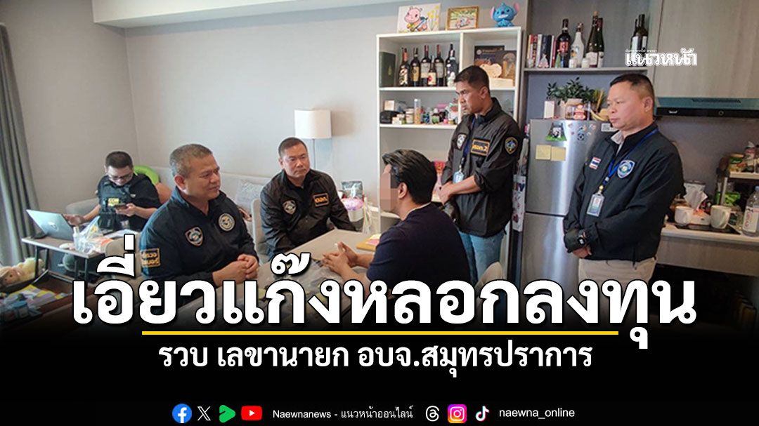 ตำรวจไซเบอร์ผนึกกำลัง ปปง. กว่า 40 นาย เปิดยุทธการตรวจค้น 5 เป้าหมาย ก่อนควบคุมตัวเลขานุการนายก อบจ.สมุทรปราการ ตามหมายจับศาล 2 แห่ง คดีเอี่ยวขบวนการหลอกลงทุนออนไลน์ ตรวจยึดคอมพิวเตอร์ โทรศัพท์ รถยนต์ และสมุดบัญชีกว่า 40 เล่ม เตรียมขยายผลเส้นทางการเงินเชิงลึก