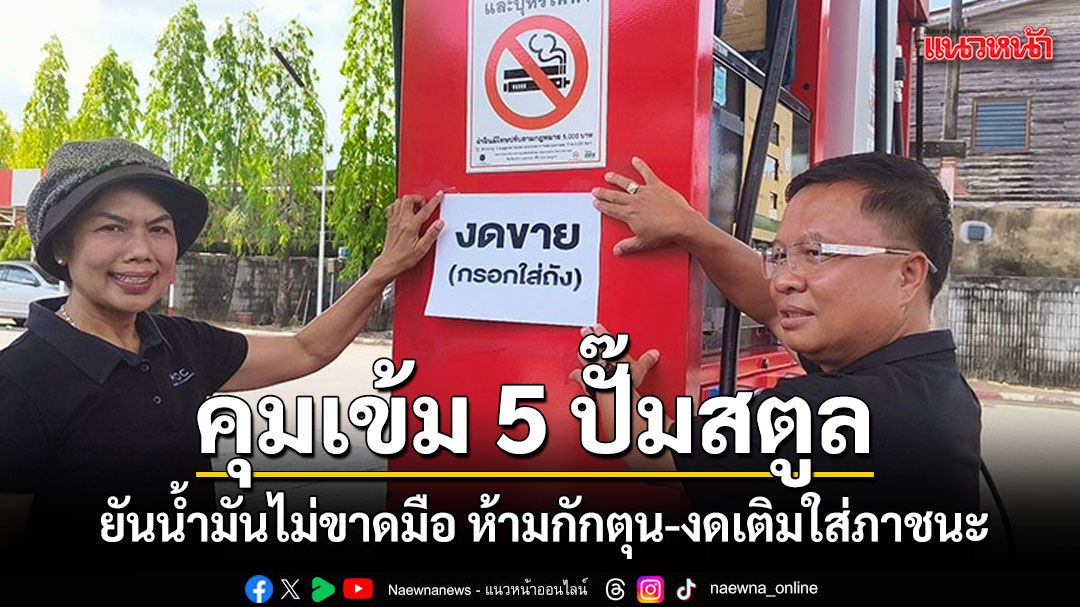 พลังงานสตูลลุยตรวจ 5 ปั๊ม คุมเข้มการเติมน้ำมัน รณรงค์งดเติมใส่ถังแกลลอน ป้องกันกักตุน
