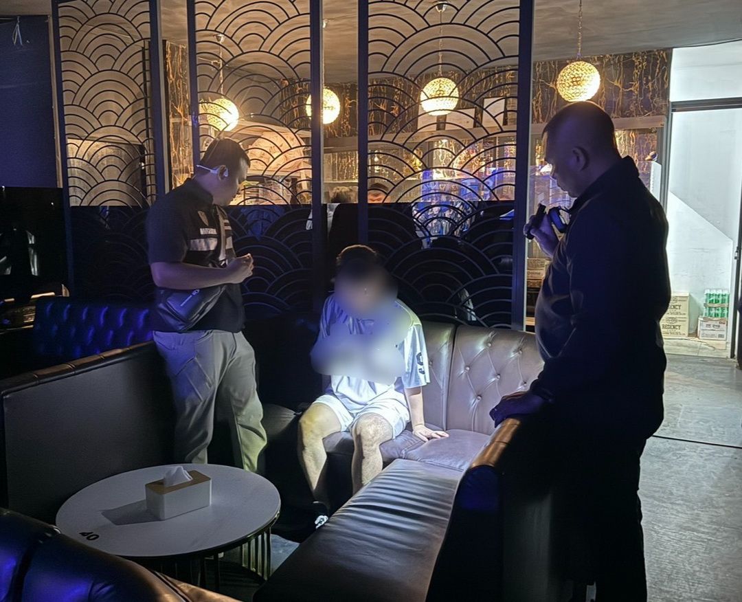 จุดแรกเจ้าหน้าที่เข้าตรวจสอบบาร์โฮสแห่งหนึ่งย่านสุทธิสาร พบพนักงานและลูกจ้างกว่า 100 ราย จากการตรวจสอบอย่างละเอียดพบพนักงานไม่มีสถานะทางทะเบียน 1 ราย และที่สร้างความตกตะลึงคือพบ ชายสัญชาติเกาหลี 1 ราย กำลังนั่งให้บริการลูกค้าในฐานะเด็กดริ๊งค์