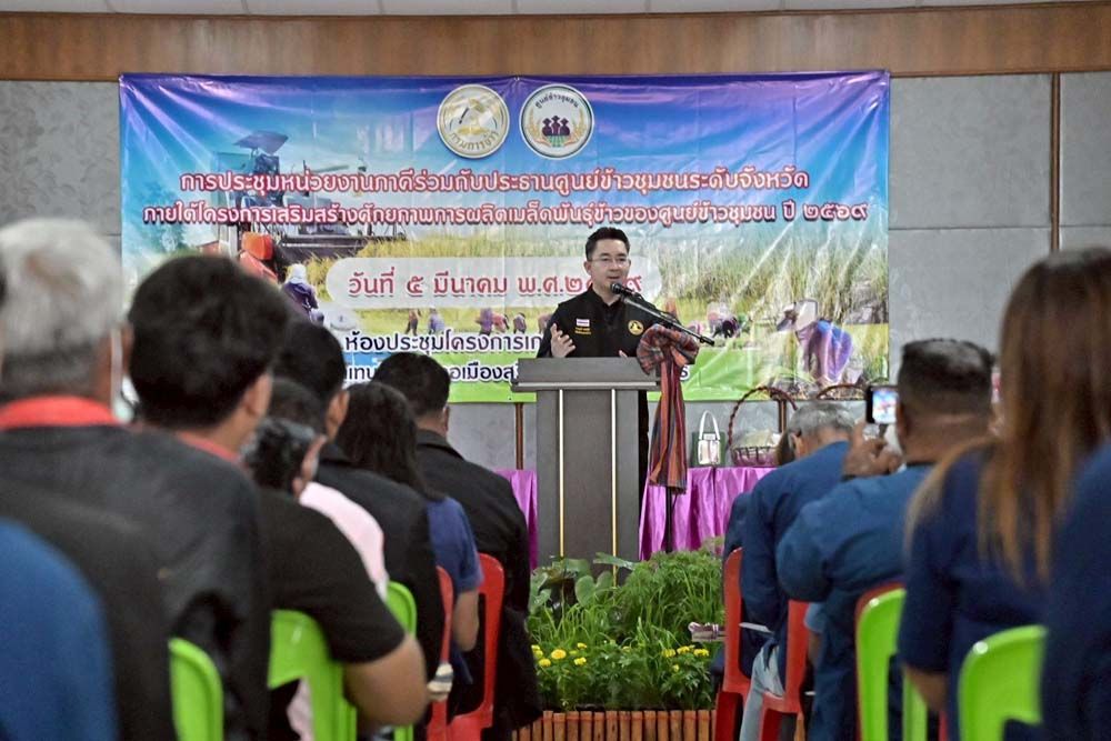 วันที่ 5 มีนาคม 2569 นายอานนท์ นนทรีย์ อธิบดีกรมการข้าว เป็นประธานเปิดการประชุมหน่วยงานภาคีร่วมกับประธานศูนย์ข้าวชุมชนระดับจังหวัด ภายใต้โครงการเสริมสร้างศักยภาพการผลิตเมล็ดพันธุ์ข้าวของศูนย์ข้าวชุมชน ประจำปี 2569 เพื่อร่วมกันกำหนดแนวทางการดำเนินงาน พัฒนาเครือข่าย และยกระดับศักยภาพการผลิตเมล็ดพันธุ์ข้าวของศูนย์ข้าวชุมชนในพื้นที่ให้มีประสิทธิภาพและยั่งยืน ณ ห้องประชุมโครงการเกษตรอทิตยาทร ตำบลเทนมีย์ อำเภอเมืองสุรินทร์ จังหวัดสุรินทร์