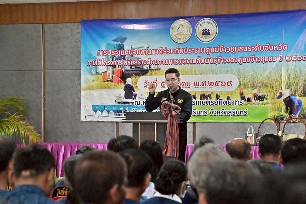 "การประชุมในครั้งนี้จะเป็นอีกหนึ่งจุดเริ่มต้นสำคัญของการบูรณาการความร่วมมือระหว่างหน่วยงานภาครัฐ ภาคีเครือข่าย และศูนย์ข้าวชุมชนในจังหวัดสุรินทร์ เพื่อร่วมกันยกระดับระบบการผลิตเมล็ดพันธุ์ข้าวให้มีมาตรฐาน สร้างความเข้มแข็งให้กับชุมชนชาวนา และขับเคลื่อนการพัฒนาภาคการผลิตข้าวไทยให้ก้าวหน้าอย่างมั่นคงและยั่งยืนต่อไป"