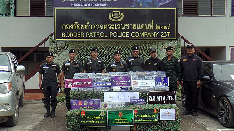 6 มีนาคม 2569 เมื่อวันที่ 5 มีนาคม ที่หน้าก้องร้อยตำรวจตระเวนชายแดนที่ 237 (ร้อย ตชด.237) ต.ไชยบุรี อ.ท่าอุเทน จ.นครพนม พ.ต.อ.ธีรศักดิ์ โพธิ์ศรีมา ผกก.ตชด.23 พ.ต.ท.บุญเลิศ วิเศษชาติ รอง ผกก.ตชด.23 พ.ต.ท.เรวัฒ จำปาน ผบ.ร้อย ตชด.237 แถลงข่าวการจับกุมผู้ต้องหา 2 ราย ตรวจยึดยาไอซ์จำนวน 200 กิโลกรัม และรถยนต์ 2 คัน เหตุเกิดที่บ้านสุขเกษม ต.โพธิ์ตาก อ.เมือง จ.นครพนม ซึ่งเป็นถนนเชื่อมระหว่างหมู่บ้าน สายบ้านเหล่าภูมี-บ้านโพนสวาง เมื่อเวลาเกือบเที่ยงคืน วันที่ 4 มีนาคมที่ผ่านมา