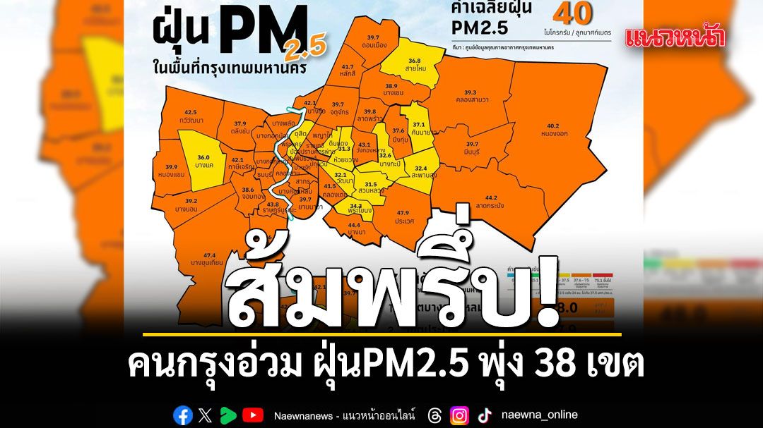ส้มพรึ่บ! คนกรุงอ่วม ฝุ่นPM2.5 พุ่ง 38 เขต