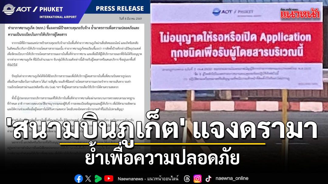 วันนี้ (8 มี.ค.69) ท่าอากาศยานภูเก็ต ได้ออกหนังสือชี้แจงว่า การติดตั้งป้ายดังกล่าวมีวัตถุประสงค์เพื่อจัดระเบียบการให้บริการรถโดยสารสาธารณะภายในพื้นที่ท่าอากาศยาน และเพื่อมีให้ผู้บริการภายนอกที่ยังไม่ได้รับอนุญาตจากท่าอากาศยานภูเก็ต ที่มีเป็นจำนวนมาก จับกลุ่มใช้บริเวณดังกล่าวนี้เฝ้ารอรับผู้โดยสารหรือเสนอบริการ ซึ่งอยู่นอกพื้นที่ที่จัดไว้ให้