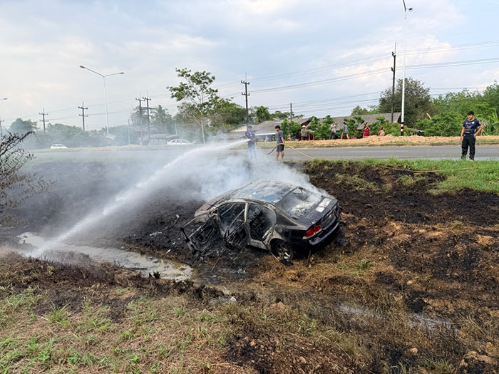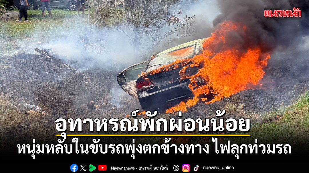 อุทาหรณ์คนขับรถ หนุ่มวัย 26 ขับรถกลับจากงานศพเกิดหลับใน รถเสียหลักตกข้างทางก่อนเกิดเพลิงไหม้ทั้งคัน โชคดีคนขับและน้องชายหนีออกมาได้ทัน