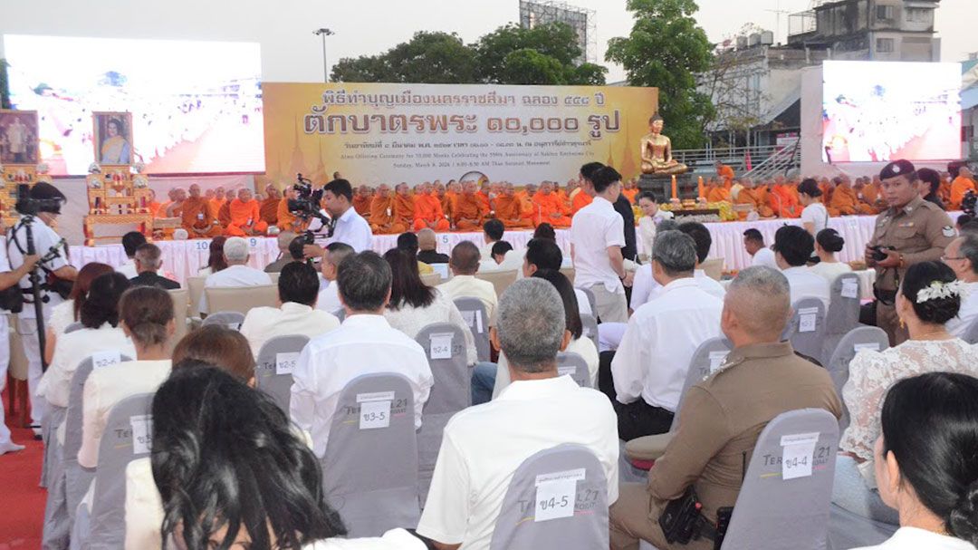 ผู้สื่อข่าวรายงานว่า ที่บริเวณลานอนุสาวรีย์ท้าวสุรนารี เขตเทศบาลนครนครราชสีมา อ.เมือง จ.นครราชสีมา พระพรหมสิทธิ กรรมการมหาเถรสมาคม เจ้าคณะภาค 11 เจ้าอาวาสวัดสระเกศ ราชวรมหาวิหาร กรุงเทพมหานคร เป็นประธานสงฆ์ พร้อมด้วยนายวิจิตร กิจวิรัตน์ รองผู้ว่าราชการจังหวัดนครราชสีมา (ผู้แทนผู้ว่าราชการจังหวัดนครราชสีมา) เป็นประธานฆราวาส , พลโท วีระยุทธ รักศิลป์ แม่ทัพภาคที่ 2 , นางสาวสุดาวรณ หวังศุภกิจโกศล อดีตรัฐมนตรีว่าการกระทรวงการอุดมศึกษา วิทยาศาสตร์ วิจัยและนวัตกรรม , นายเทวัญ ลิปตพัลลภ อดีต รมช.ศึกษาธิการ , ดร.ยลดา หวังศุภกิจโกศล นายกองค์การบริหารส่วนจังหวัดนครราชสีมากล่าวต้อนรับ นอกจากนี้ยังมีนายนิกร โสมกลาง ส.ส.นครราชสีมา , นายวัชรพล โตมรศักดิ์ ส.ส.นครราชสีมา , นพ.วรรณรัตน์ ชาญนุกูล นายกเทศมนตรีนครนครราชสีมา ข้าราชการศาล อัยการ ทหาร ตำรวจ พ่อค้า คบดี พี่น้องประชาชน ญาติโยมศิษยานุศิษย์ สาธุชน นุ่งขาวห่มขาวร่วมพิธีกว่า 10,000 คน ทั้งนี้ ในพิธีตักบาตรพระสงฆ์ 10,000 รูป สมโภชเมืองนครราชสีมา 558 ปี