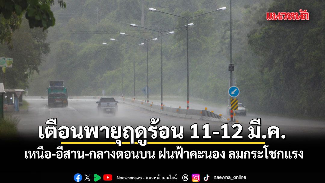 เตือนพายุฤดูร้อน ช่วง 11-12 มี.ค. เหนือ-อีสาน-กลางตอนบน ฝนฟ้าคะนอง ลมกระโชกแรง