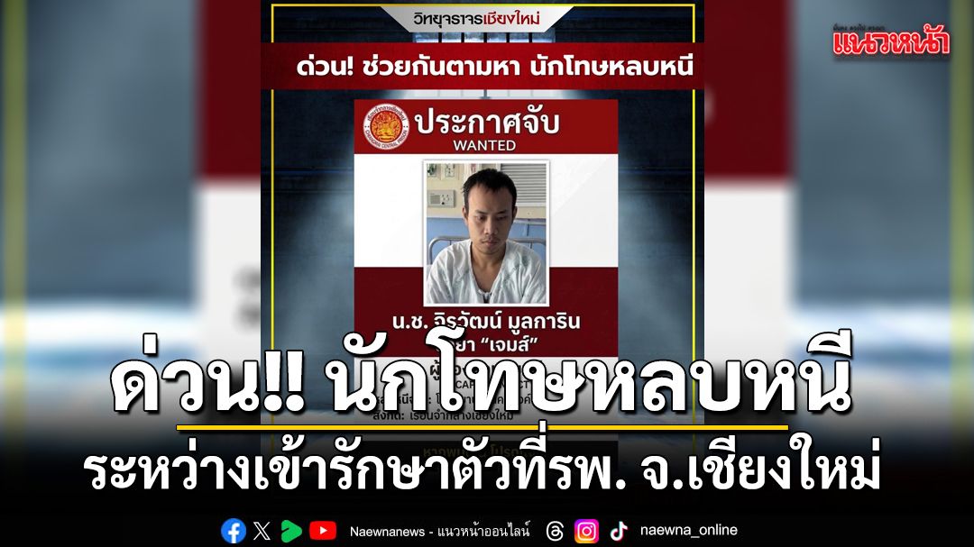 ด่วน! ช่วยกันตามหา นักโทษหลบหนีระหว่างรักษาตัวที่รพ.นครพิงค์ จ.เชียงใหม่ ใครพบเห็นรีบแจ้ง