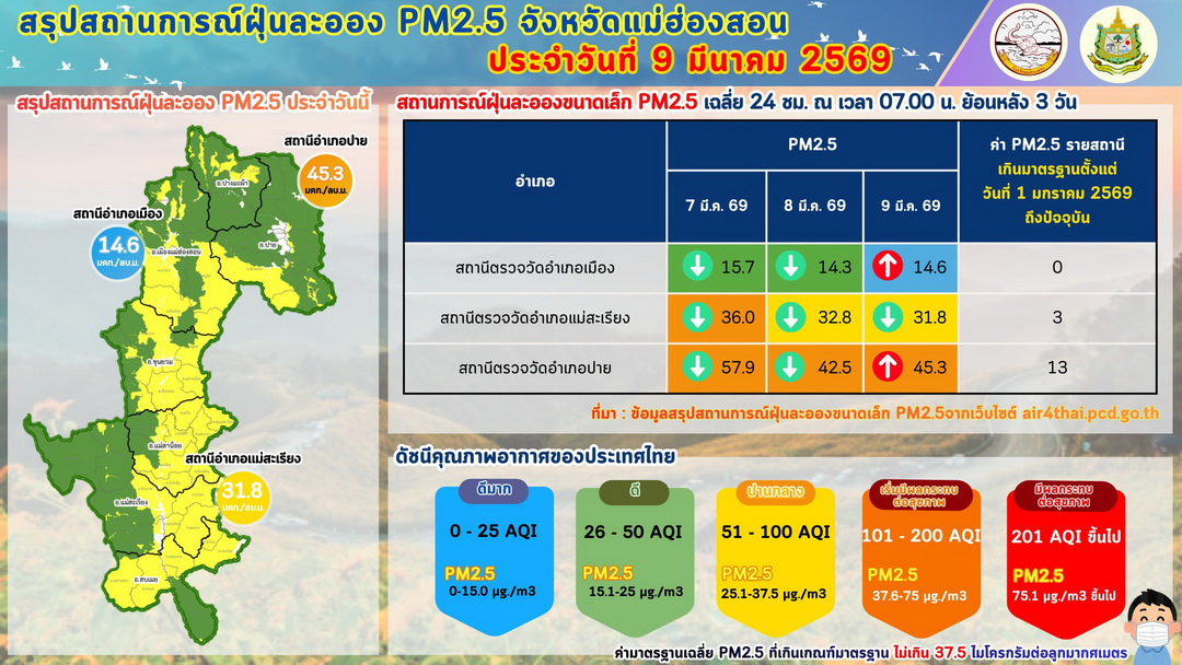 นายวิบูรณ์ แววบัณฑิต ผู้ว่าราชการจังหวัดแม่ฮ่องสอน ได้สั่งการด่วนไปยังนายอำเภอทั้ง 7 แห่ง (ปาย, ปางมะผ้า, เมืองแม่ฮ่องสอน, ขุนยวม, แม่ลาน้อย, แม่สะเรียง และสบเมย) ให้ดำเนินมาตรการแก้ไขปัญหาอย่างเข้มข้น ดังนี้ 1.บังคับใช้ระบบ ‘Fire D’ (ไฟดี): ราษฎรที่จำเป็นต้องเผาป่าชุมชนเพื่อเก็บของป่า ต้องลงทะเบียนผ่านระบบเพื่อชิงเผาตามหลักวิชาการและต้องทำแนวกันไฟทุกครั้ง 2.ลาดตระเวนเข้มงวด: สั่งการให้ทุกหมู่บ้านจัดเวรยามร่วมกับเจ้าหน้าที่รัฐ เดินเท้าลาดตระเวนในพื้นที่เสี่ยงเพื่อป้องกันการลอบเผาป่าอย่างต่อเนื่อง และ 3.รณรงค์ความร่วมมือ: ประชาสัมพันธ์ขอความร่วมมือประชาชนให้งดเผาป่าในทุกกรณีที่ไม่ได้รับอนุญาต