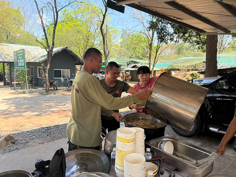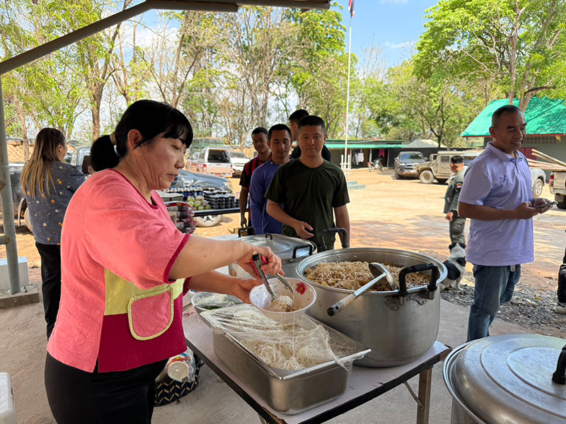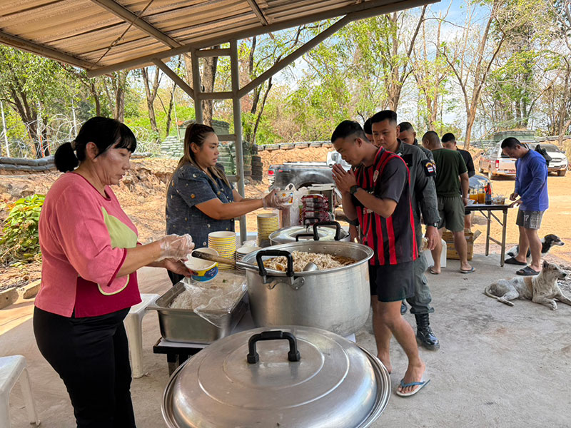 ซึ่งบรรยากาศเป็นไปด้วยความอบอุ่นสร้างขวัญกำลังใจให้กับ จนท.ป้องกันชายแดนเป็นอย่างมาก โดยเจ้าหน้าที่บางนายที่เดินทางมารับอาหาร ต้องนำภาชะ เช่น หม้อ และกล่องโฟมมาใส่กระเพาะปลาน้ำแดงเพื่อนำกลับไปฝากเพื่อนกำลังพลที่ประจำการอยู่ฐานหน้าแนวชายแดน ซึ่งไม่สามารถออกจากที่ตั้งได้ เนื่องจากต้องเฝ้าระวังพื้นที่ตลอด 24 ชั่วโมง นอกจากนี้ยังได้นำเครื่องดื่มและขนมขบเคี้ยวมามอบให้กับกำลังพลด้วย