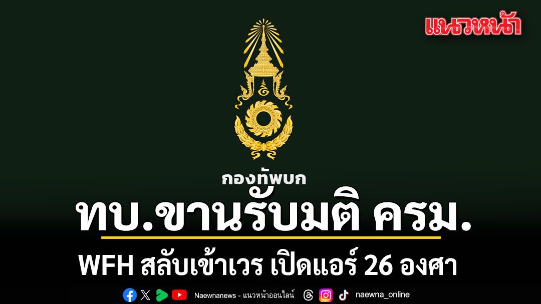 ทบ. กำหนดแนวทางปฏิบัติราชการตามมติ ครม. รับมือวิกฤตพลังงานจากสถานการณ์ตะวันออกกลาง เน้น Work from Home ควบคู่มาตรการประหยัดพลังงาน คงความพร้อมในทุกภารกิจ