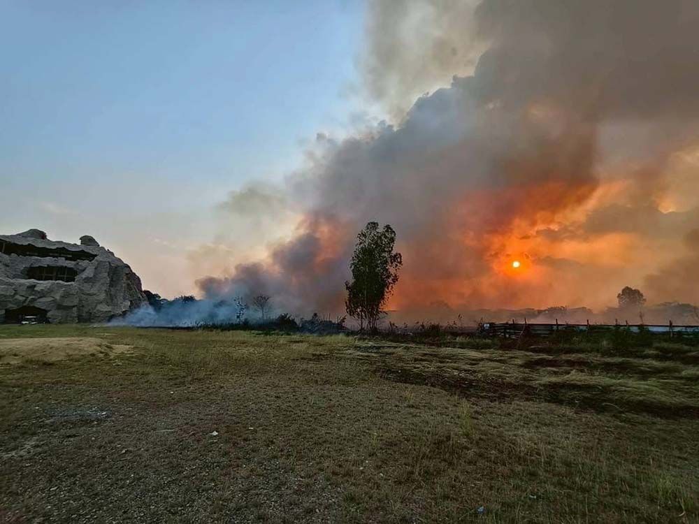 นอกจากนี้ ยังมีเหตุการณ์ไฟไหม้หญ้าขนาดใหญ่ในพื้นที่คู้บอน เขตบางเขน เมื่อช่วงเย็นถึงดึกที่ผ่านมา ซึ่งกินพื้นที่กว้างกว่า 50 ไร่ และการดับไฟเป็นไปอย่างยากลำบากเนื่องจากไม่มีประปาหัวแดงในพื้นที่จุดเกิดเหตุ ทำให้เกิดควันและฝุ่นละอองสะสมเติมเข้ามาในกรุงเทพฯ เพิ่มเติมจากปัญหาเรื่องลมเปลี่ยนทิศ