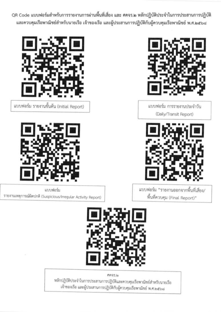 5. และหากตรวจพบวัตถุต้องสงสัยหรือเหตุผิดปกติ ให้แจ้งให้ศคจร.ฯ, UKMTO และหน่วยงานที่เกี่ยวข้องทันที