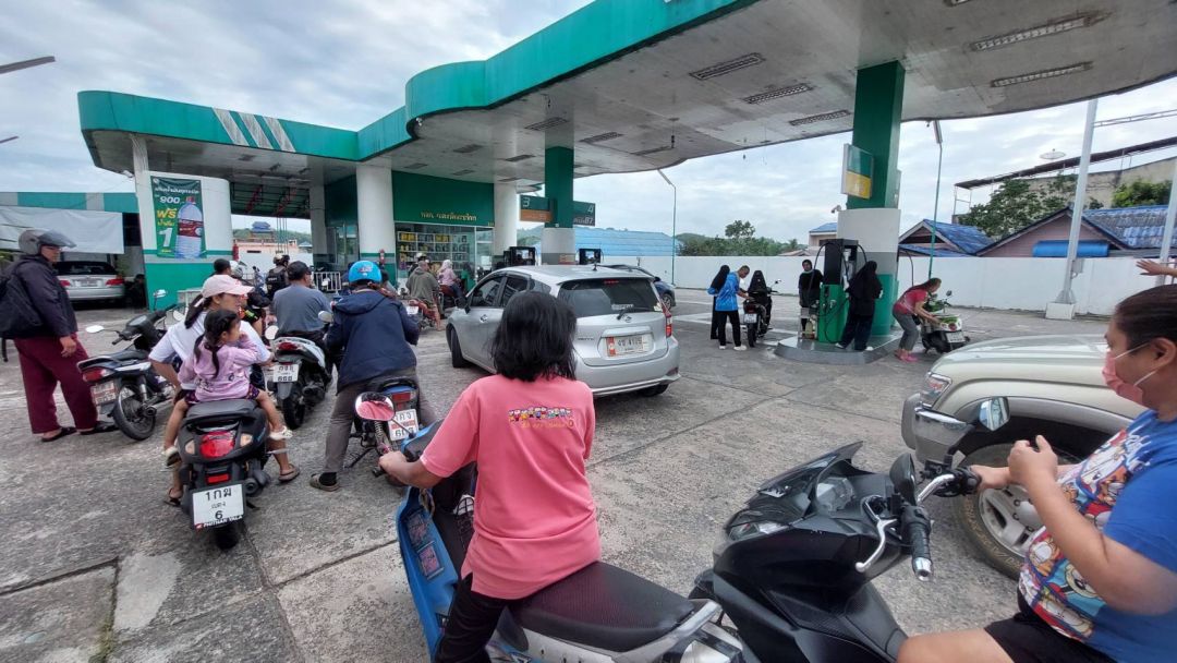 ปั๊มน้ำมันในพื้นที่ อ.เบตง จ.ยะลา ดีเซล เบนซิน งดใส่แกลลอน เริ่มขาดตลาด ประชาชนและกลุ่มเกษตรกร แห่เติมจนเกลี้ยงปั๊ม คิวยาวเหยียดปั๊มหลายแห่งในเบตงหมดตั้งแต่ก่อนเที่ยง พระ ตำรวจสายตรวจเดือดร้อนหนัก หวั่นหากการสู้รบยืดเยื้อหวั่นกระทบห่วงโซ่อาหารโลก ทำราคาปุ๋ยอาหาร พุ่งสูงขึ้นอีก