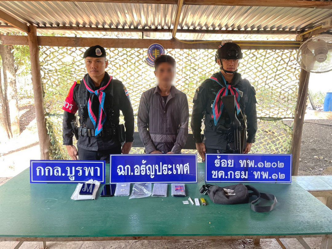 ทหารพราน 12 รวบหนุ่มเขมรลอบข้ามแดนป่าไร่ ยึดยาไอซ์-มือถือ 5 เครื่อง เจ้าหน้าที่หวั่นเป็นสายลับชี้พิกัดทางทหาร