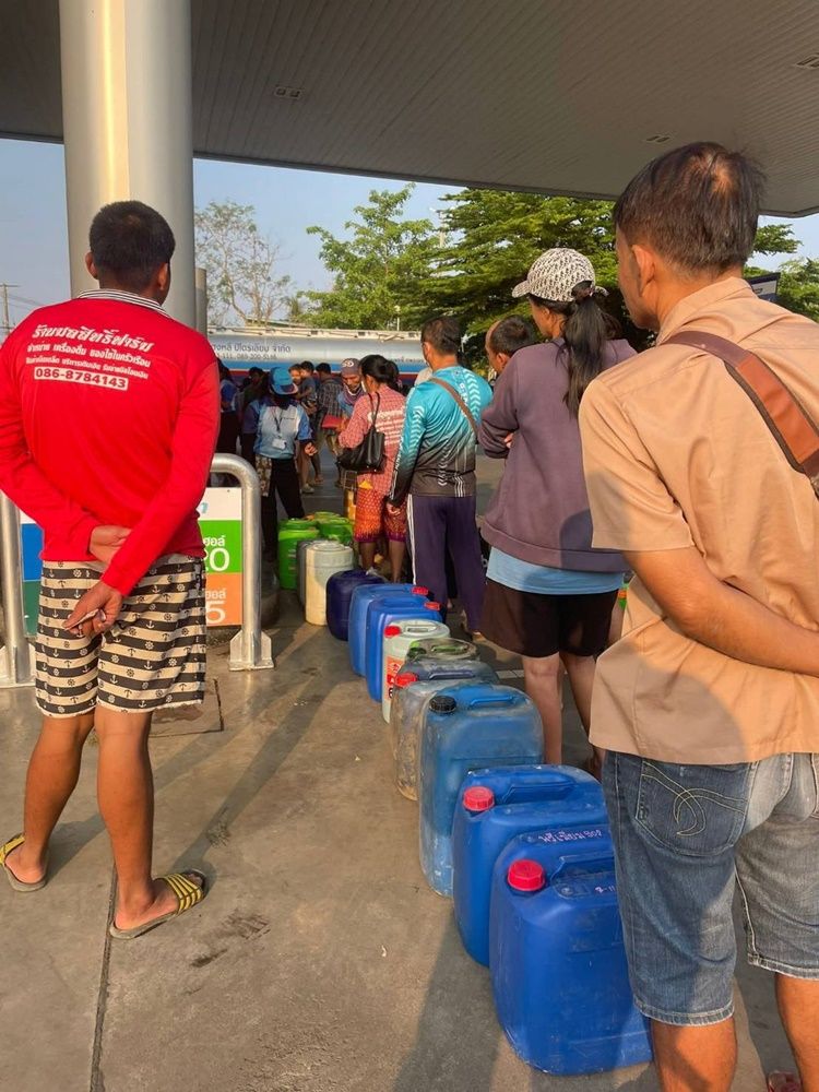 เกษตรกรแห่ต่อคิวซื้อน้ำมันดีเซลยาวเหยียด หวั่นขาดน้ำมันไม่มีสูบน้ำช่วงข้าว "ตั้งท้อง"