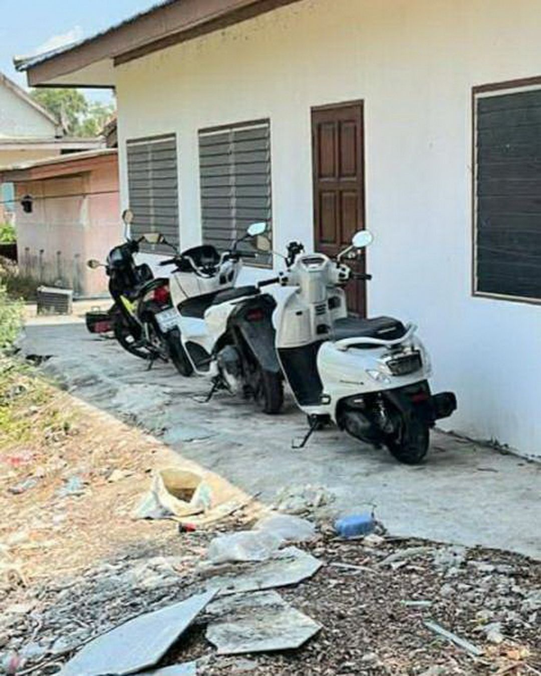 จากการเข้าตรวจสอบ เจ้าหน้าที่พบรถจักรยานยนต์สภาพใหม่ซุกซ่อนอยู่รวม 3 คัน ประกอบด้วย 1.Honda PCX สีขาว ไม่ติดแผ่นป้ายทะเบียน 2.Honda Wave 110 สีเหลือง-ดำ ทะเบียนกรุงเทพมหานคร และ 3.Yamaha Grand Filano สีเทา ไม่ติดแผ่นป้ายทะเบียน
