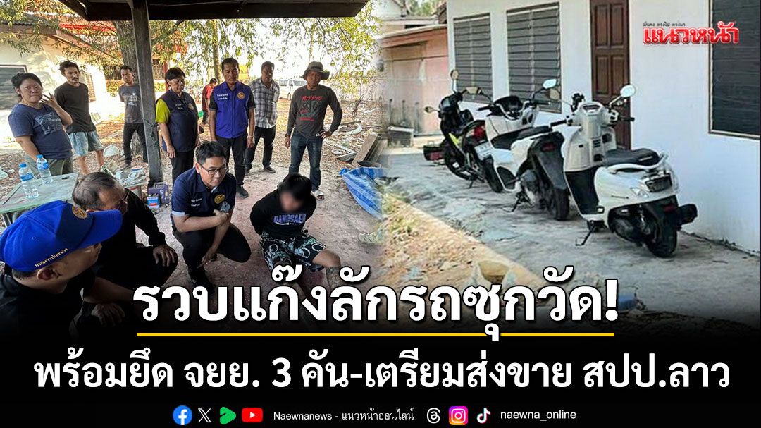 บุกทลายแก๊งลักรถซุกหลังวัด! นายอำเภอลาดหลุมแก้วรวบผู้ต้องหา 3 ราย พร้อมยึด จยย. 3 คัน สภาพใหม่เตรียมส่งขาย สปป.ลาว