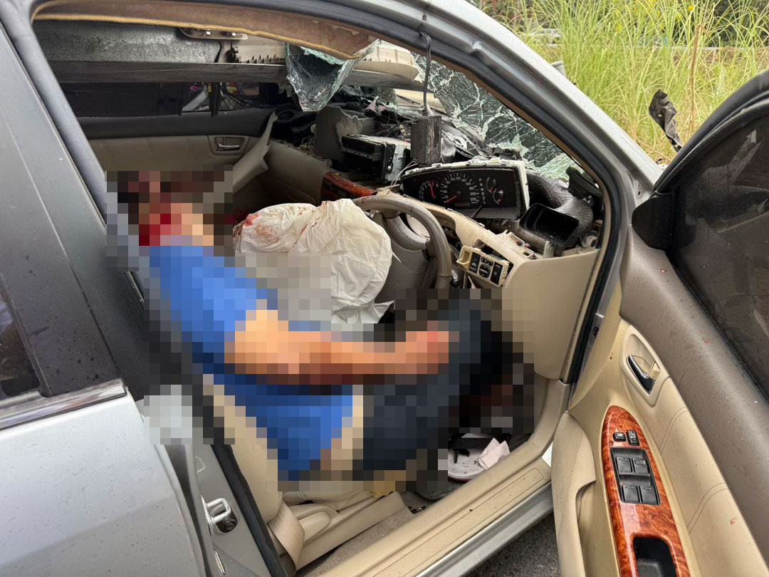 ในที่เกิดเหตุพบรถยนต์เก๋ง Toyota Corolla Altis สีบรอนซ์ ทะเบียนกรุงเทพมหานคร อยู่ในสภาพพุ่งอัดอยู่กับการ์ดเลนเหล็กข้างทาง ความแรงจากการชนส่งผลให้ราวเหล็กกั้นถนนขนาดใหญ่แทงทะลุผ่านกระจกหน้ารถ เข้าไปในห้องโดยสาร และทะลุออกกระจกด้านหลังรถอย่างน่าสยดสยอง