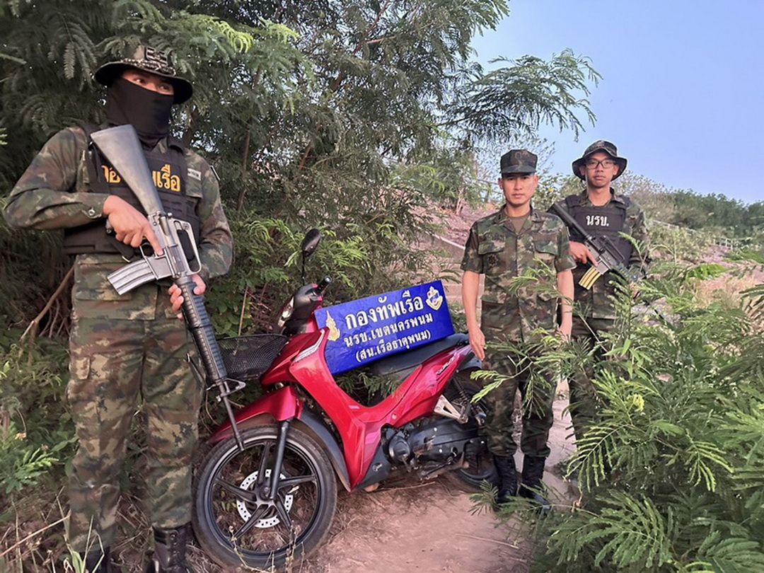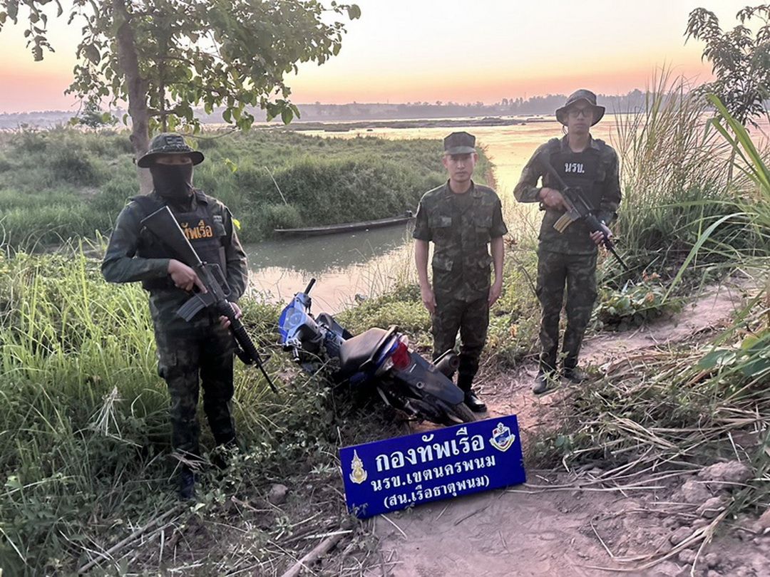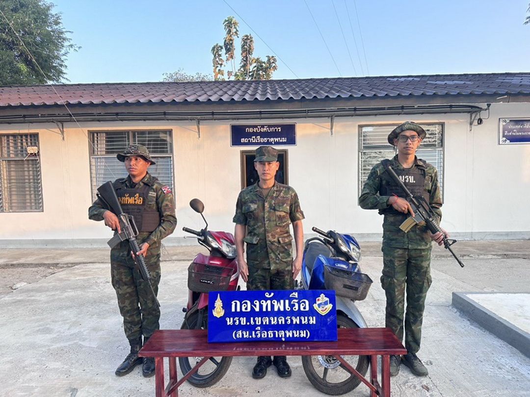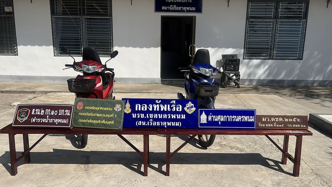 วันที่ 17 มี.ค. 69 ที่สถานีเรือธาตุพนม น.ท.รุ่งเรือง มาสุทธิ หน.สน.เรือธาตุพนม (นรข.เขตฯ นครพนม) พร้อมด้วยหน่วยงานความมั่นคงในพื้นที่ ร่วมกันแถลงผลการตรวจยึดรถจักรยานยนต์เตรียมลักลอบส่งออกนอกราชอาณาจักรโดยไม่ผ่านพิธีทางศุลกากร หลังซุ่มตรวจยึดได้บริเวณริมฝั่งแม่น้ำโขง บ้านคับพวง หมู่ 4 ต.น้ำก่ำ อ.ธาตุพนม