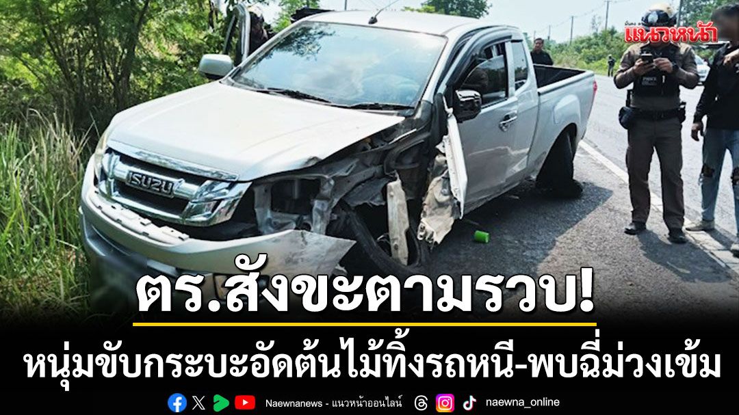 ตร.สังขะตามรวบทันควัน! หนุ่มขับกระบะชนต้นไม้แล้วทิ้งรถหนี แฝงตัวซื้อชุดใหม่หวังตบตา ตรวจพบฉี่ม่วงเข้ม