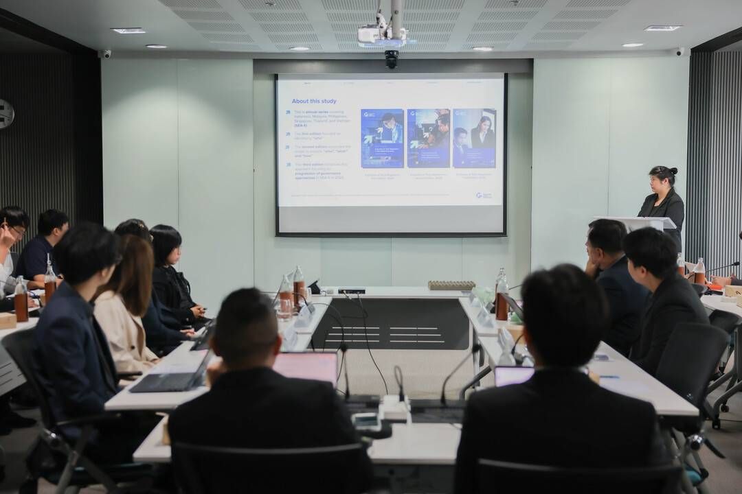 ภายหลังการเปิดตัวรายงาน ได้มีการเสวนาโต๊ะกลมในหัวข้อ “Governing Frontier Technologies in Southeast Asia” โดยมีผู้เชี่ยวชาญจากหลายภาคส่วนร่วมแลกเปลี่ยนมุมมอง ได้แก่ นายทยา นาวานุเคราะห์ จากสำนักงานส่งเสริมเศรษฐกิจดิจิทัล (depa) ดร.อภิวดี ปิยธรรมรงค์ จากสถาบันข้อมูลขนาดใหญ่ (BDI) ดร.สลิลธร ทองมีนสุข จากสถาบันวิจัยเพื่อการพัฒนาประเทศไทย (TRDI) ผศ.ดร.ภูมิศิริ ดำรงวุฒิ จากคณะนิติศาสตร์ จุฬาลงกรณ์มหาวิทยาลัย และนายจิระวัฒน์ ภูมิศรีแก้ว จากสมาคมการค้าแพลตฟอร์มดิจิทัลไทย (TDPA) ผู้เข้าร่วมเสวนาเห็นพ้องว่า แม้ประเทศไทยยังอยู่ระหว่างการพัฒนากฎหมายด้าน AI อย่างครอบคลุม แต่ปัจจุบันมีกฎหมายและกรอบกำกับดูแลที่เกี่ยวข้องรองรับอยู่แล้ว โดยในระยะต่อไปควรมุ่งสู่แนวทางการกำกับดูแลเชิงหลักการที่มีความยืดหยุ่น พร้อมทั้งพัฒนาแนวทางการจัดระดับความเสี่ยงที่เหมาะสม และคำนึงถึงความแตกต่างของแต่ละภาคอุตสาหกรรม