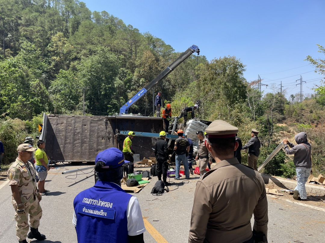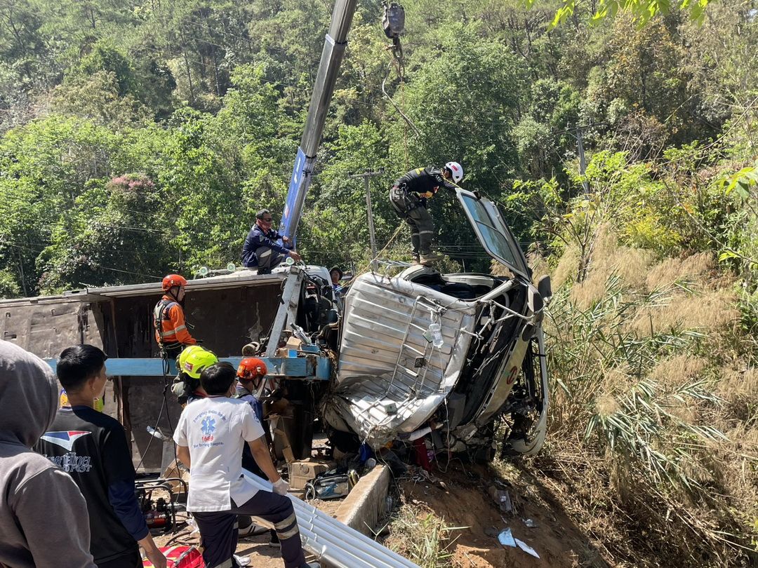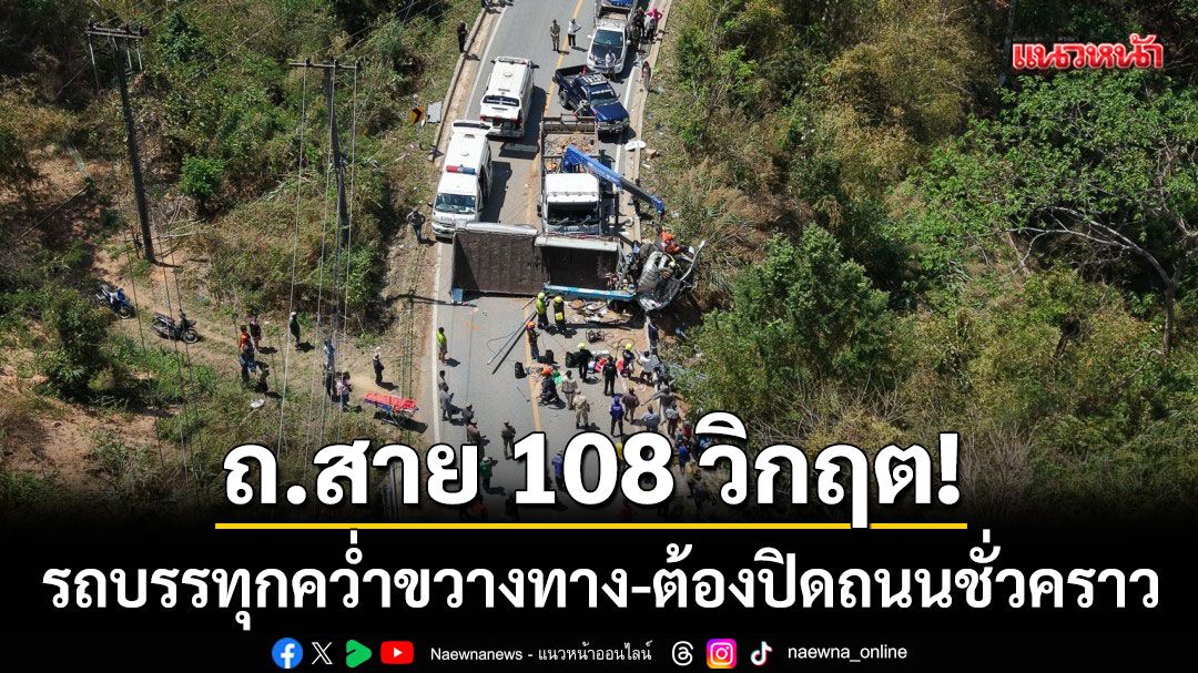 ถนนสาย 108 วิกฤต! รถบรรทุกเสาไฟฟ้าพลิกคว่ำขวางทางหลวงแม่สะเรียง-ฮอด เจ็บ 3 ราย กู้ภัย 2 จังหวัดรุดช่วย-ปิดการจราจรชั่วคราว
