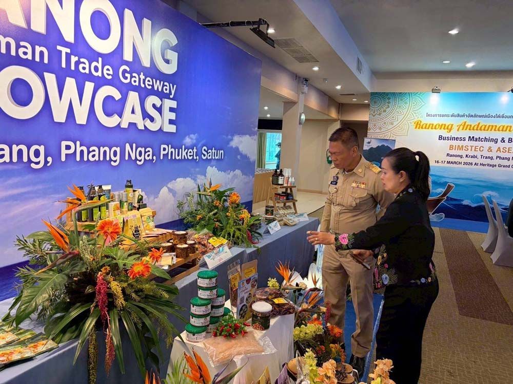 จังหวัดระนองเร่งขับเคลื่อนยุทธศาสตร์ “Ranong Andaman Gateway” มุ่งยกระดับสู่ศูนย์กลางโลจิสติกส์และการค้าฝั่งอันดามัน เชื่อมโยงมหาสมุทรอินเดียและกลุ่มประเทศ BIMSTEC ควบคู่การเปิดเวทีจับคู่ธุรกิจไทย–ต่างประเทศ เพื่อผลักดันสินค้าอัตลักษณ์ภาคใต้สู่ตลาดโลกอย่างเป็นรูปธรรม