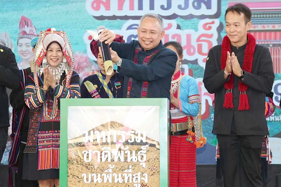 นายกันตพงศ์ กล่าวต่อไปว่า การจัดงานครั้งนี้ถือเป็นการบูรณาการความร่วมมือของกรมพัฒนาสังคมและสวัสดิการร่วมกับหน่วยงานภาครัฐ ภาคเอกชน ภาคประชาสังคม และเครือข่ายกลุ่มชาติพันธุ์ ภายใต้ “เป้าหมายเดียวกัน” คือ การพัฒนาคุณภาพชีวิตราษฎรบนพื้นที่สูง ควบคู่กับการคุ้มครองและพิทักษ์สิทธิ ส่งเสริมการมีส่วนร่วมของทุกภาคส่วน โดยเฉพาะการอนุรักษ์ ฟื้นฟู และต่อยอดอัตลักษณ์ วิถีชีวิต และภูมิปัญญาของกลุ่มชาติพันธุ์ ซึ่งถือเป็นทรัพยากรทางวัฒนธรรมที่ล้ำค่าของประเทศไทย