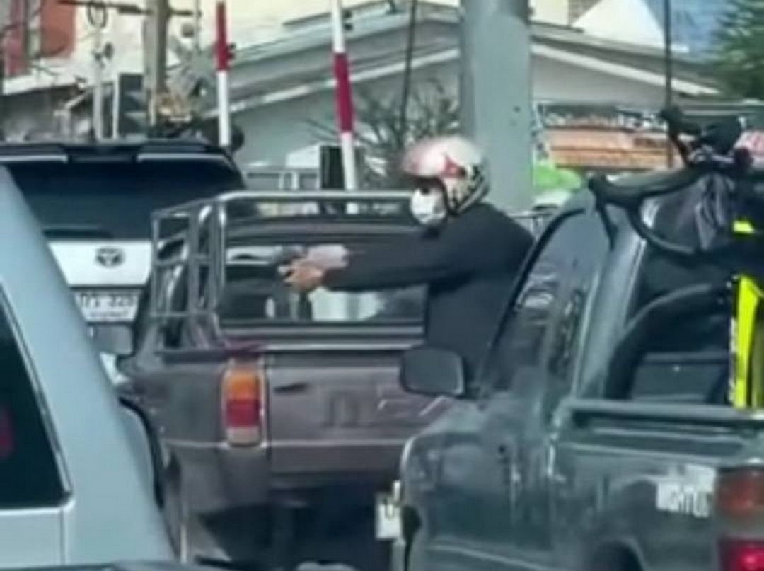 ในที่เกิดเหตุ พบชายวัย 63 ปี ยืนถกเถียงกับเจ้าหน้าที่ตำรวจนายหนึ่ง (นอกเครื่องแบบ) โดยมีรถยนต์โตโยต้า สปอร์ตไรเดอร์ ของชายสูงวัยจอดอยู่ริมถนน จากการสอบถามทราบว่า ก่อนเกิดเหตุรถของชายสูงวัยได้ขับเบียดกับรถกระบะลำหนึ่ง ก่อนจะหักมาปาดหน้ารถจักรยานยนต์ของตำรวจนายดังกล่าว และได้ชูอาวุธปืนขึ้นมาในลักษณะข่มขู่