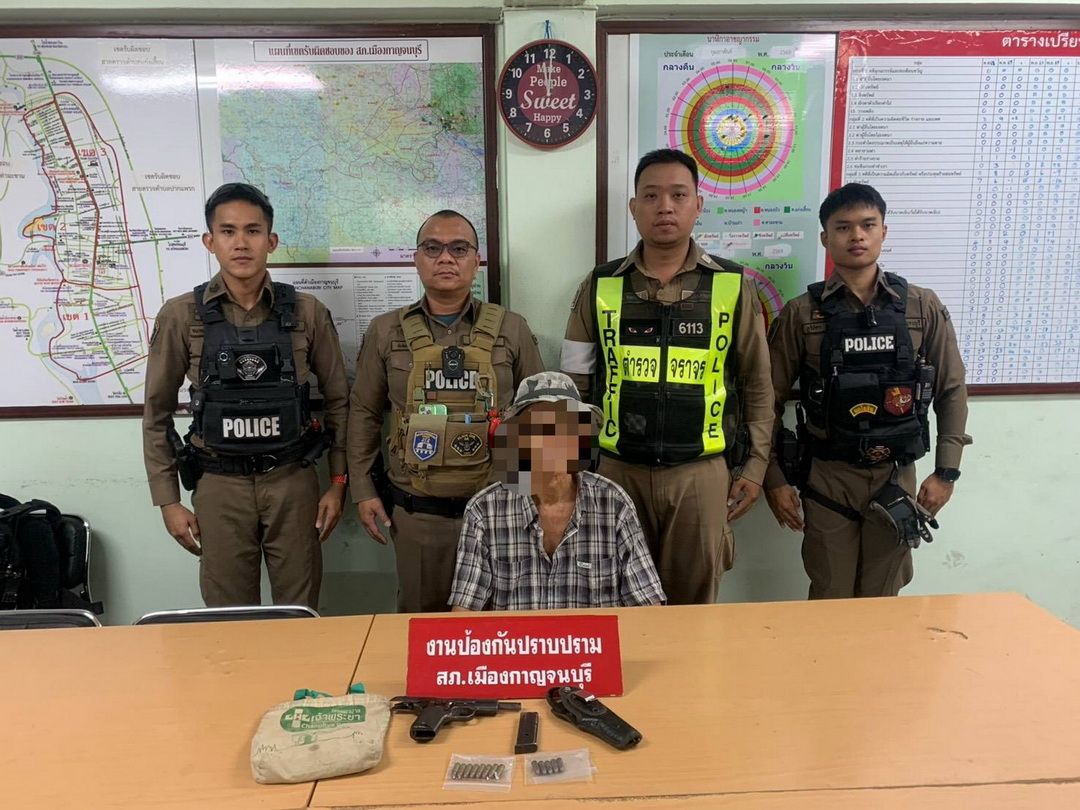 ระทึกแยกไฟแดงเมืองกาญจน์! ลุงวัย 63 ขับปาดหน้าโชว์ปืนขู่ ตร.นอกเครื่องแบบสกัดจับคารถ ค้นเจอ 9 มม. พร้อมกระสุนเพียบ