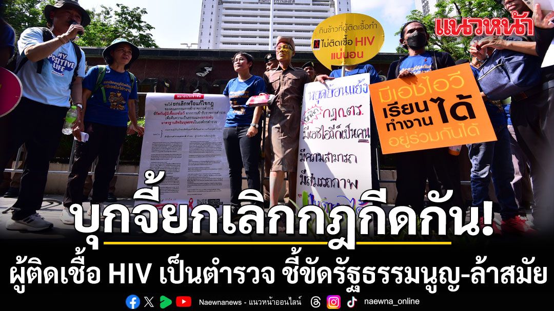 เครือข่ายผู้ติดเชื้อ HIV บุกสำนักงานตำรวจแห่งชาติ จี้ยกเลิกกฎ ก.ตร. กีดกันผู้ติดเชื้อเป็นตำรวจ ชี้ขัดรัฐธรรมนูญ-ล้าสมัย พร้อมจัดกิจกรรมเชิงสัญลักษณ์ “เปลือยอคติ“